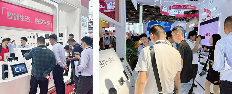 此外最為搶眼的還得數人機交互區域,最新的智能座艙系列產品、顯控一體機等設備,吸引眾多客戶駐足體驗互動,設備不僅可實現上電即用,并且環境可靠性高,適用于各種惡劣環境,再配合智能按鍵面板以及電源管理?,可拓展更多用戶自定義功能,為客戶量身打造多元化的智能座艙場景。